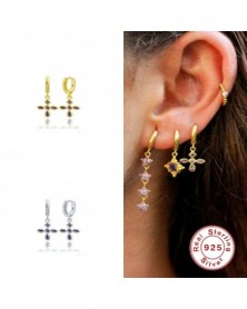 Viny Black/Purple/White Diamond Cross Pendientes Plata 925 Sterling Silver Earrings For Women Earrings Hoops Серьги 2021 Trend