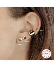 Pendientes Plata Small Pyramid 925 Sterling Silver Earrings For Women Piercing Stud Earring 2021Trend Vintage Kolczyki 3 4 5 6mm