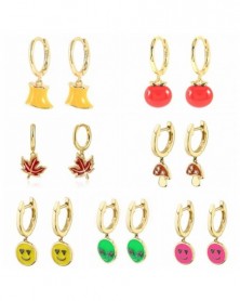 Viny 2021 Trend Vintage Enamel Earrings Pendientes 925 Sterling Silver Mini Mushroom Smile Apple Maple Leaf Earrings For Women