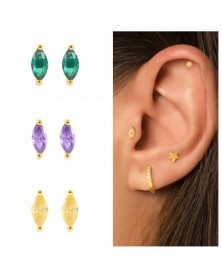 Viny lila Piros zöld színű lószem gyémánt fülbevaló 925 ezüst piercing fülbevaló Pendientes ékszerek