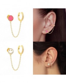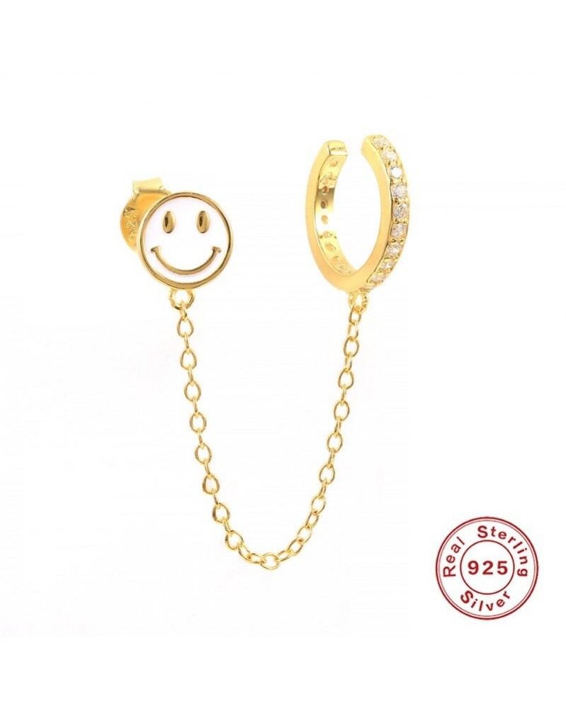 Viny 2021 Trend Earrings Pendientes Plata 925 Sterling Silver Earrings For Women Smiling Face Inlaid Zircon Chain Clip Earring