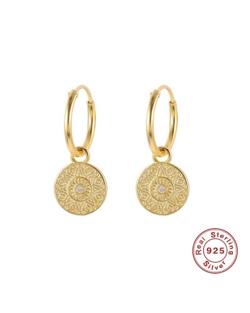 Viny Bohemian Hippie Lunar Medallion Earrings For Women 925 Sterling Silver Earrings Hoops Pendientes Plata Piercing Jewellery