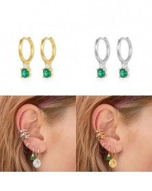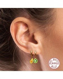 Viny Green Zircon Earrings For Women 925 Sterling Silver Love Fruit Butterfly Enamel Earrings Hoops Pendientes Plata Jewellery