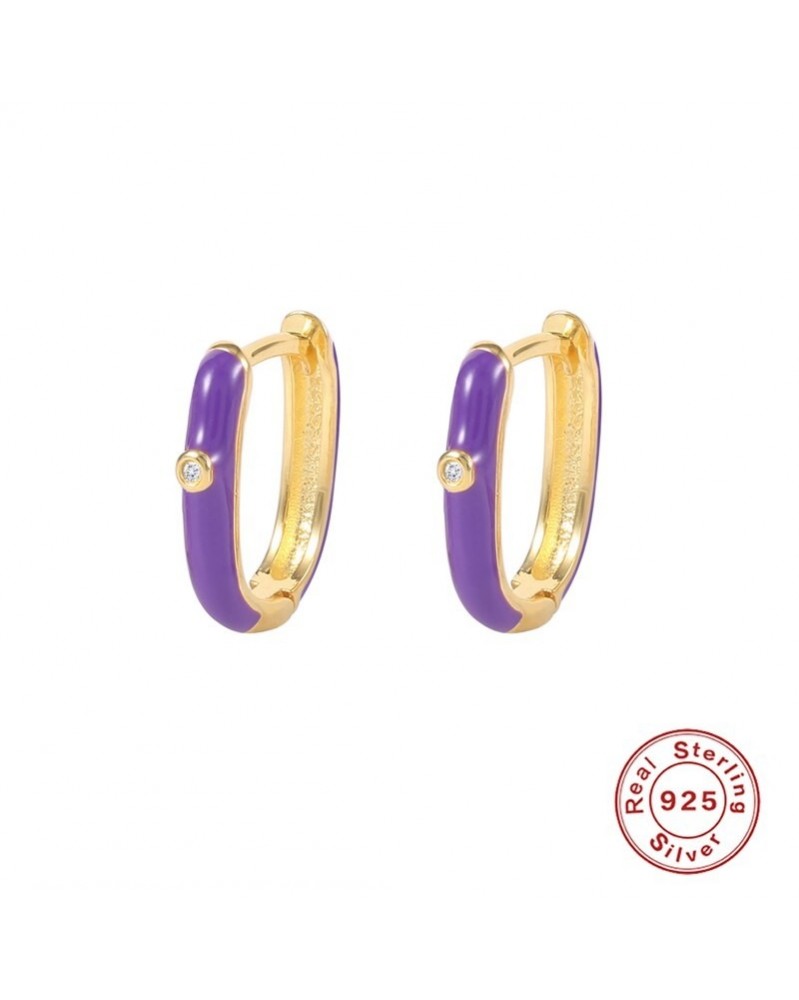 Viny lila fekete csepp olaj egyszerű U-alakú zománcozott fülbevaló nőknek 925 ezüst fülbevaló karika karika Pendientes