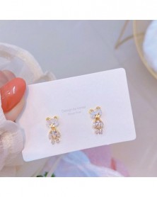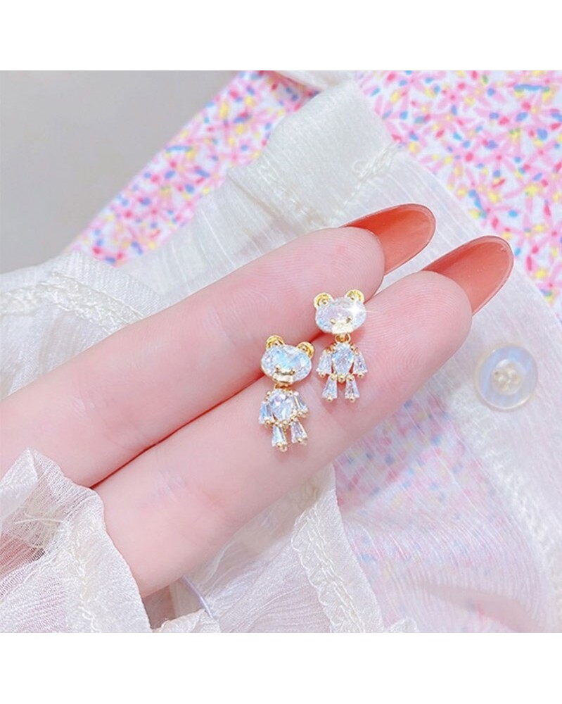JUWANG ragyogó fényes Bling AAA cirkon medve fülbevaló aranyos édes luxus betét 18K valódi arany romantikus női