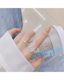 JUWANG Korean Elastic Ring Spring And Summer Style Sparkling Pearlescent Color Pearl Powder Blue Flower Ring For Women
