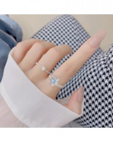 JUWANG koreai rugalmas gyűrű tavaszi és nyári stílusban csillogó gyöngyház színű gyöngypor kék virágos gyűrű nőknek