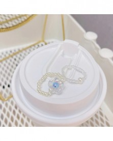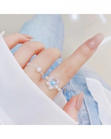 JUWANG Korean Elastic Ring Spring And Summer Style Sparkling Pearlescent Color Pearl Powder Blue Flower Ring For Women