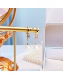 Francia 14K valódi arany bevonatú berakott fülbevaló szuper nagy villanó gyöngy fülbevaló temperamentum retró