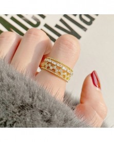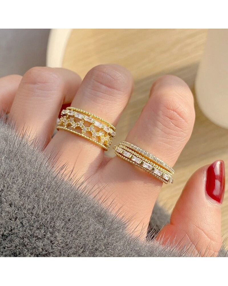 Hot Sale French Hollow Inlaid Crystal CZ Ring for Women AAA Cubic Zircon Rhinestone Open Design Adjustable Luxury Female Bague