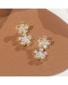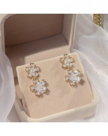 Romantikus 14k valódi arany szuperfényű dupla virágok női fülbevaló Bling AAA cirkónium CZ Stud fülbevaló esküvői