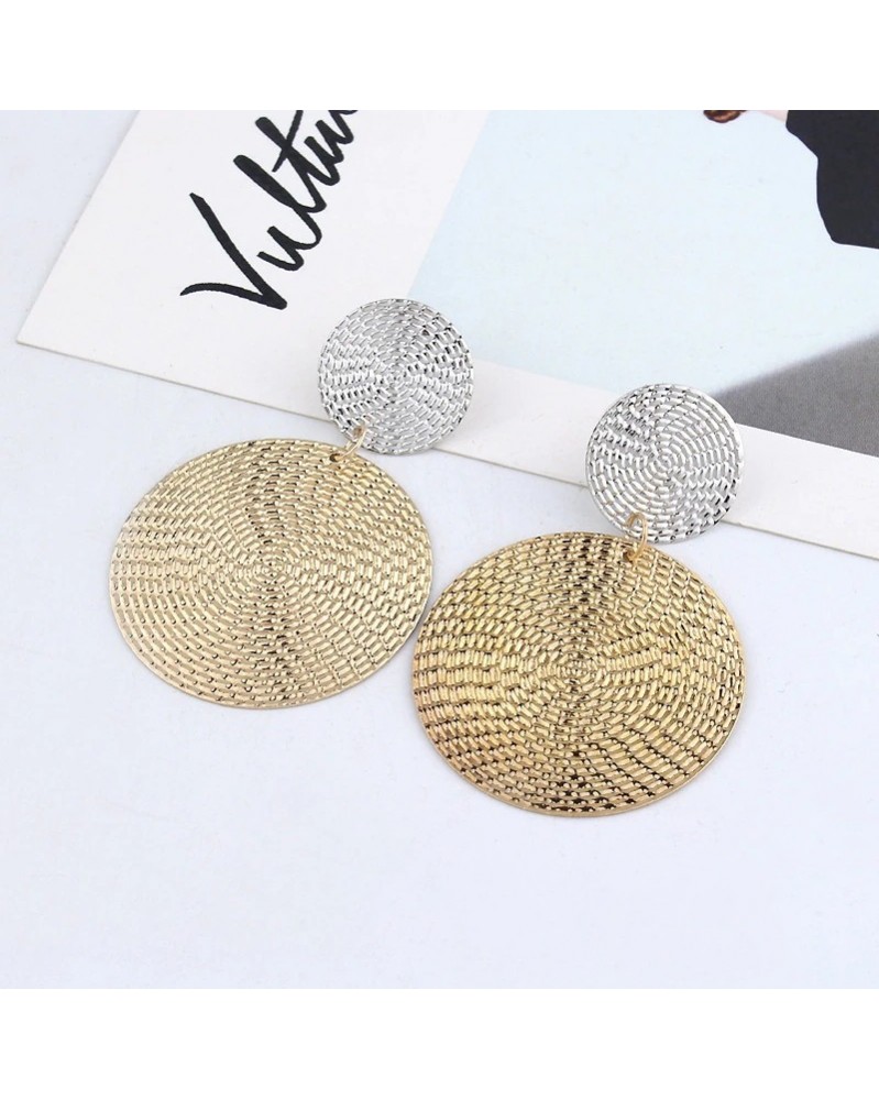 Fém színe: Kép látható - 2021 új mintás fülbevaló nőknek Vintage kerek nagy fülbevaló Punk Hip Hop geometriai