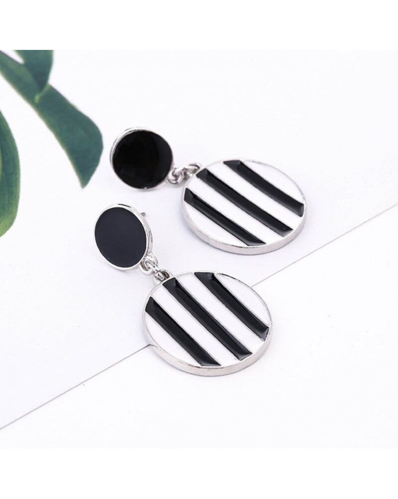 Fém színe: ezüst - 2021 új divat klasszikus fekete fehér csíkos fülbevaló egyszerű kerek nyilatkozat csepp fülbevaló
