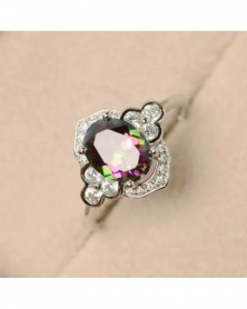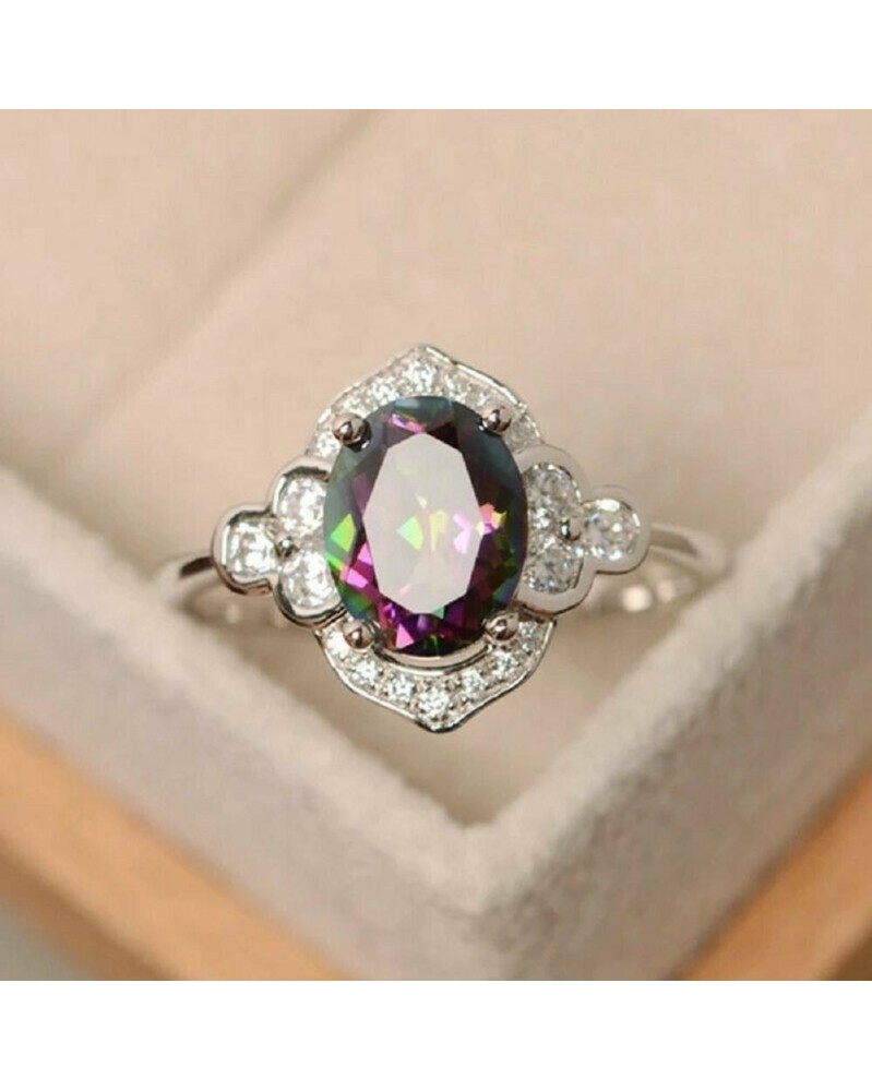 10. - Gyönyörű 925 ezüst ékszer ovális vágású misztikus topáz női esküvői gyűrű 6-12