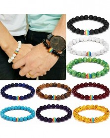 * 32 - 8mm-es csakra kézzel készített természetes drágakőből készült kerek gyöngyök karkötő gyógyító Reiki Lucky