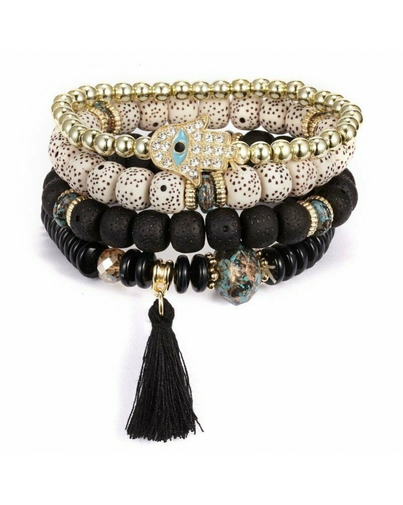 44-4db Fekete tenyér bojt - Többrétegű női Boho kristálygyöngyös gyöngyök Csehország karkötők mandzsetta karperec