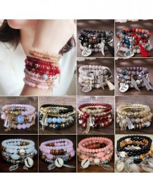 2-bojtos fehér - Többrétegű női Boho kristálygyöngyös gyöngyök Csehország karkötők mandzsetta karperec szett