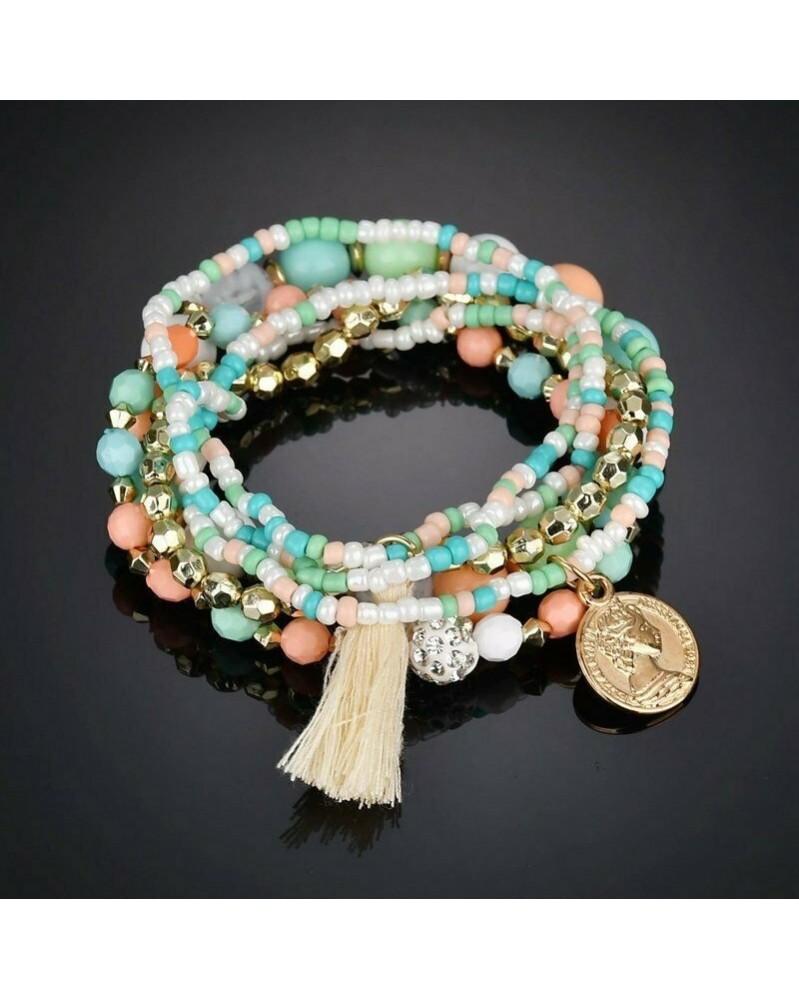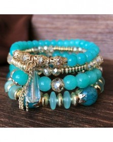11-6db Zöld - Többrétegű női Boho kristálygyöngyös gyöngyök Csehország karkötők mandzsetta karperec szett