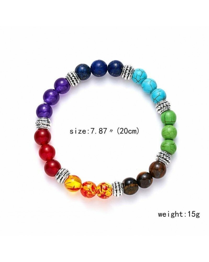 15-többszínű - 7 csakra szüreti természetes lávakő gyógyító gyöngyös karkötő karperec jóga ünnep