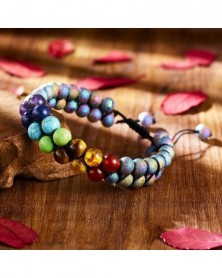 11 színű fehér - Vintage 7 csakra természetes lávakő gyógyító gyöngyös karkötő karkötő Yogo Holiday