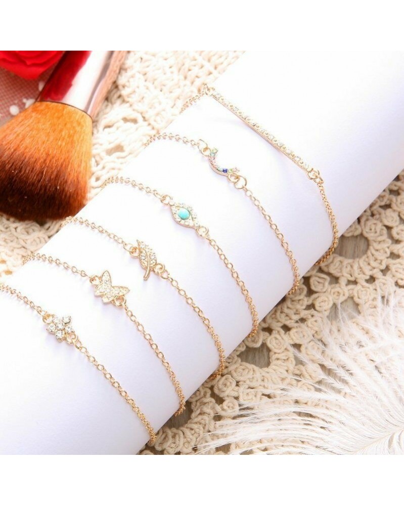 * 6db Pillangó - Vintage többrétegű 6db Boho kristálylánc mandzsetta Bohémia karkötő készlet karperec