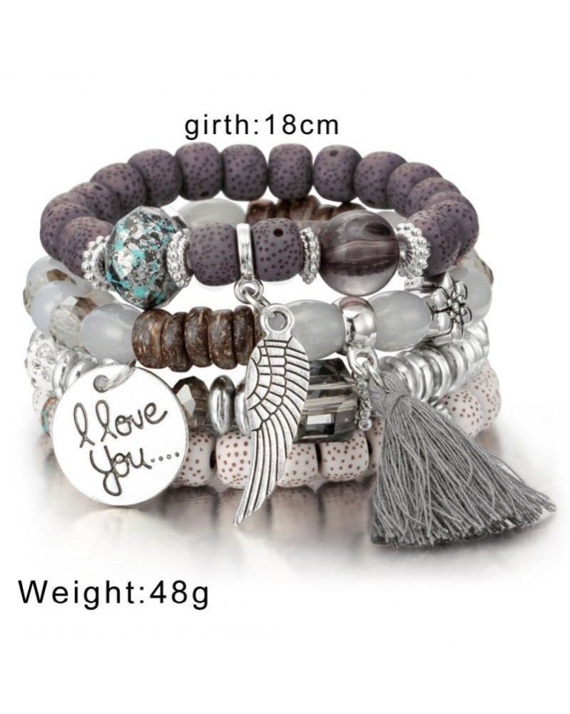 29-stílusú 2 szürke - Vintage többrétegű 6db Boho kristálylánc mandzsetta Bohémia karkötő készlet karperec