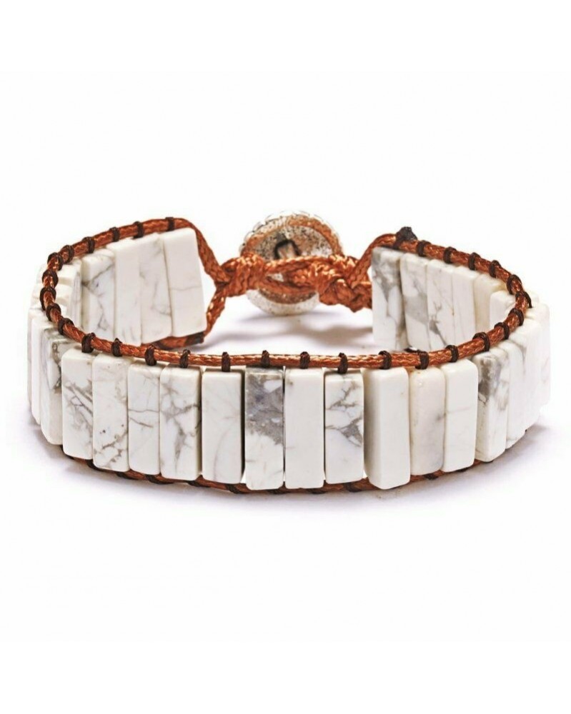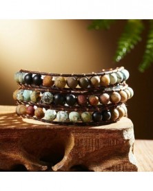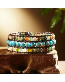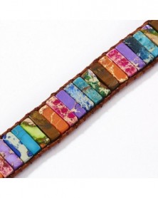 14-Fehér - Retro 7 csakra bőr természetes kőből készült karkötő Csőgyöngyös tekercs karperec kézzel