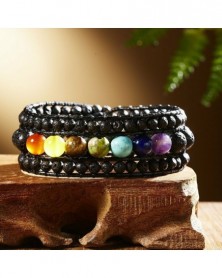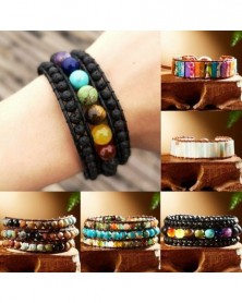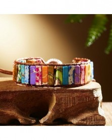 21-Fehér & Fehér - Retro 7 csakra bőr természetes kőből készült karkötő Csőgyöngyös tekercs karperec kézzel