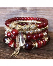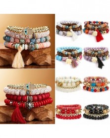 41-4Pcs narancssárga tenyér bojt - Vintage Boho kristálygyöngyös gyöngyök többrétegű csehországi karkötők