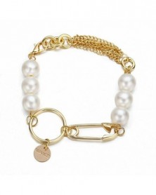 This bracelet is carefully crafted with irregular baroque pearls alternated with copper tubes and makes a chic all match with both office and party wears.
