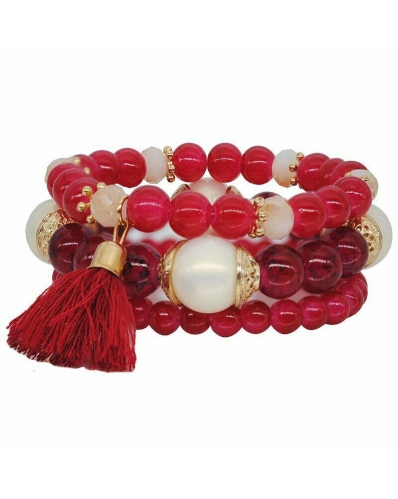 37-3Pcs Piros bojt - Vintage női Boho többrétegű kristály gyöngyök Csehország karkötők készlet mandzsetta karperec