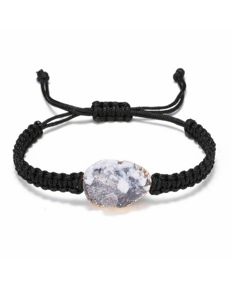 Ovális-fekete - Természetes kő kristály kör Holdlánc geometriai karkötők mandzsetta karperec nők