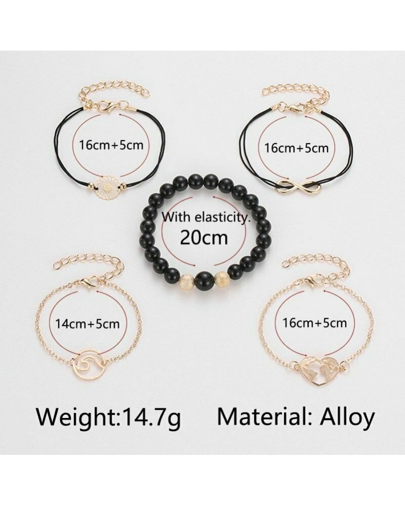 5db " 8" szívtérkép - Divat női ékszer készlet kötél természetes kő kristály gyöngyös lánc karkötő