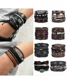 Divat ezüst rozsdamentes acél - Retro férfi többrétegű fonott bőr karkötő készlet fonott karperec karszalag ajándék