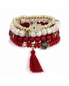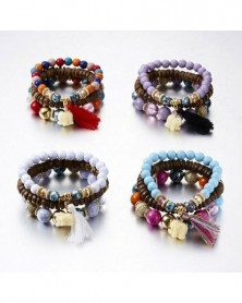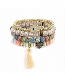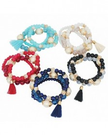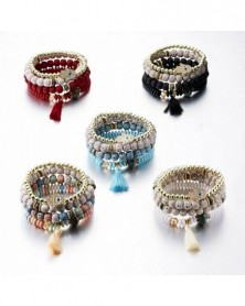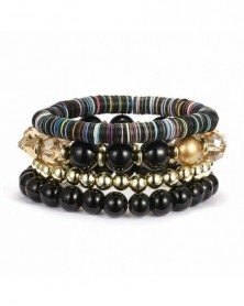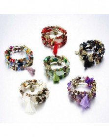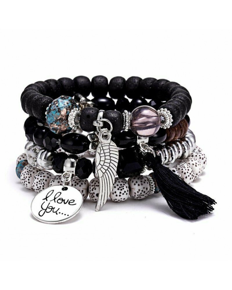 4db fekete szárnyas bojt - Női többrétegű természetes kő gyöngyök bojt karkötő karperec nyári ünnepi ajándék