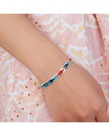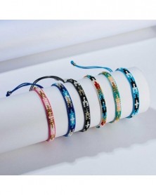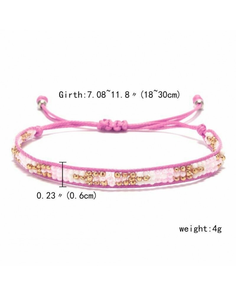 Rózsaszín kereszt - Boho női karkötő barátság fonott kötél pamutszövésű lánc vegyes gyöngyök ajándék