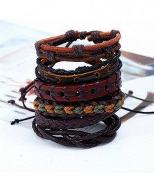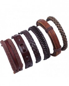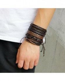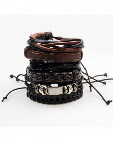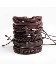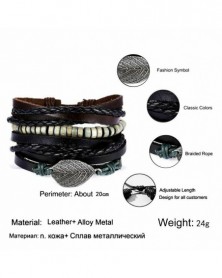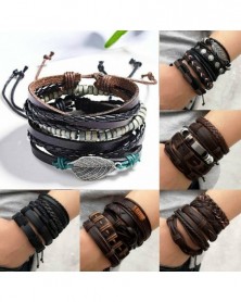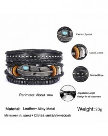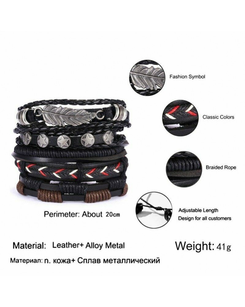 5db fekete - Többrétegű retro bőr karkötő, kézzel készített férfi punk karkötő karperec mandzsetta ajándék