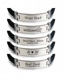 Rozsdamentes acél fekete 7 - Személyre szabott férfiak rozsdamentes acélból készült fonott karkötő vésett apai