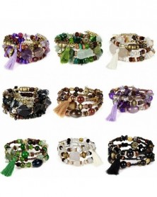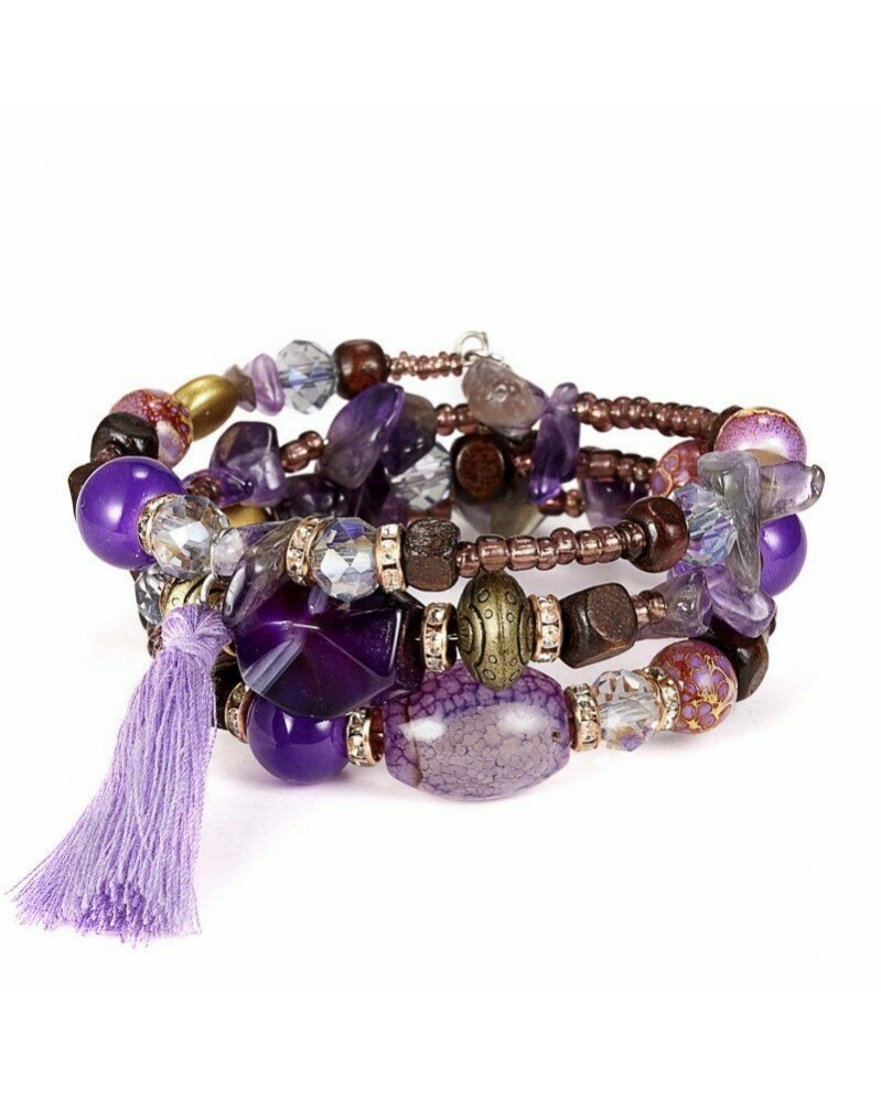 Gyöngyök * 13 lila - Boho többrétegű gyöngyök Nartural karkötő bojt karperec karszalag női ajándék