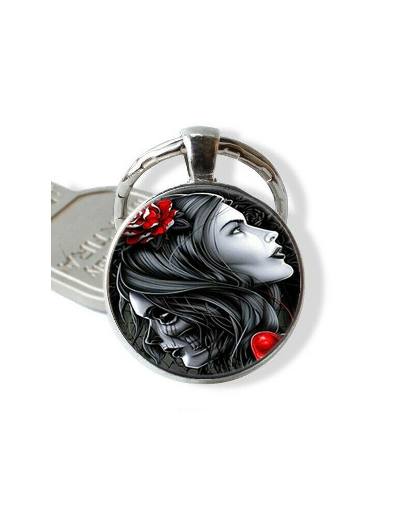 Nincs szín - Kulcstartó cukor koponya lány fotó Tibet ezüst Cabochon üveg medál kulcstartó