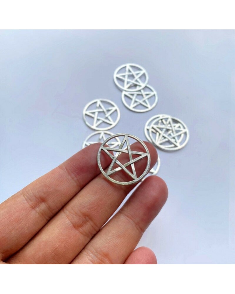 Nincs szín - 10db 25x25mm Pentagram varázsa antik ezüst tónusú ékszer készítés