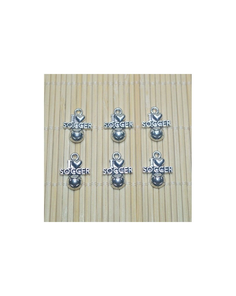 Nincs szín - 30db tibeti ezüst I LOVE Soccer Charm medál gyöngy ékszer készítés barkácsolás 15mm