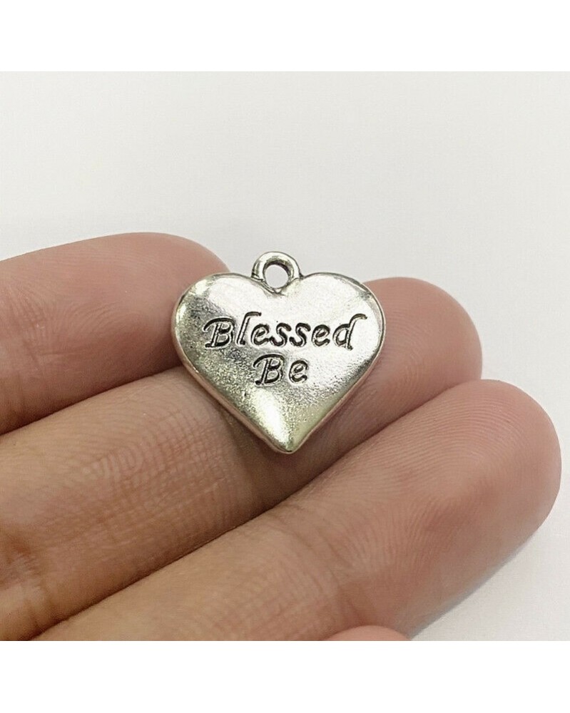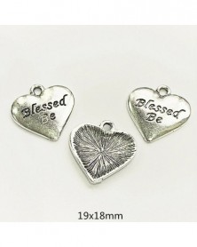 Nincs szín - 10db 19x18mm Blessed Be Heart Charms antik ezüst színű medálok
