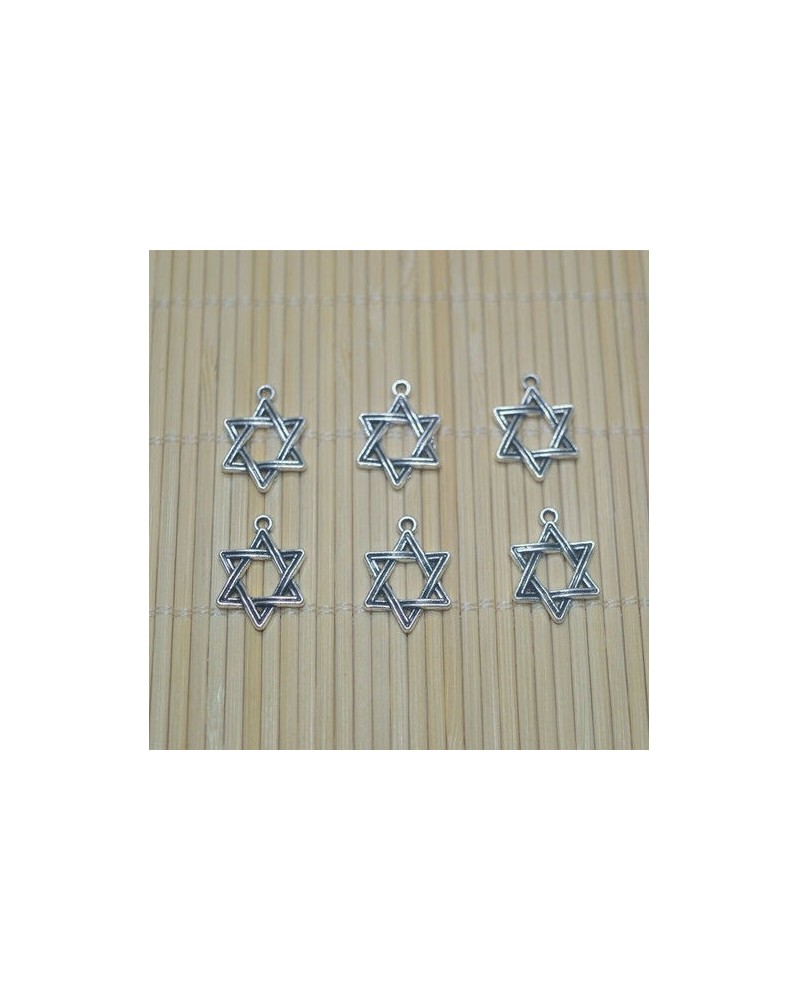 Nincs szín - 12db tibeti ezüst hexagramm báj medál gyöngy ékszer készítés DIY 16mm