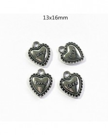 Nincs szín - 10db 13x16mm Szerelmes szív Varázsa antik ezüst tónusú Medálkészítés