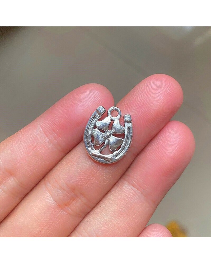 Nincs szín - 10db 18x15mm-es patkó szerencsés lóhere varázsa antik ezüst hangú ékszer készítés