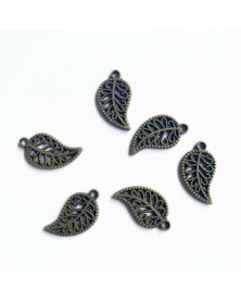 Nincs szín - 30db 19x11mm fa levél Charms antik bronz tónusú Medálkészítés