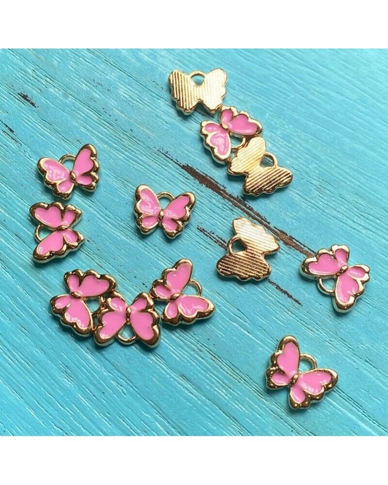 Nincs szín - 18db 10x13mm rózsaszín cseppolaj pillangó varázsa arany tónusú ékszereket
