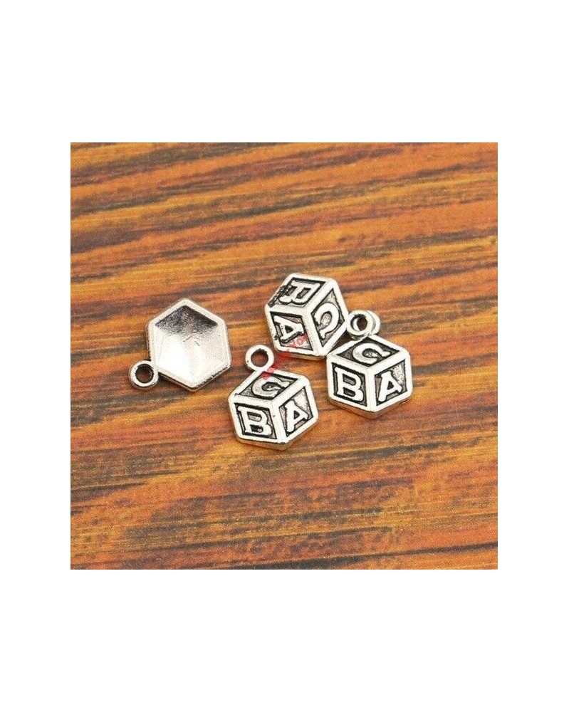 Nincs szín - 60db ABC Dice Charm tibeti ezüst gyöngy ékszerkészítés 14 * 10mm