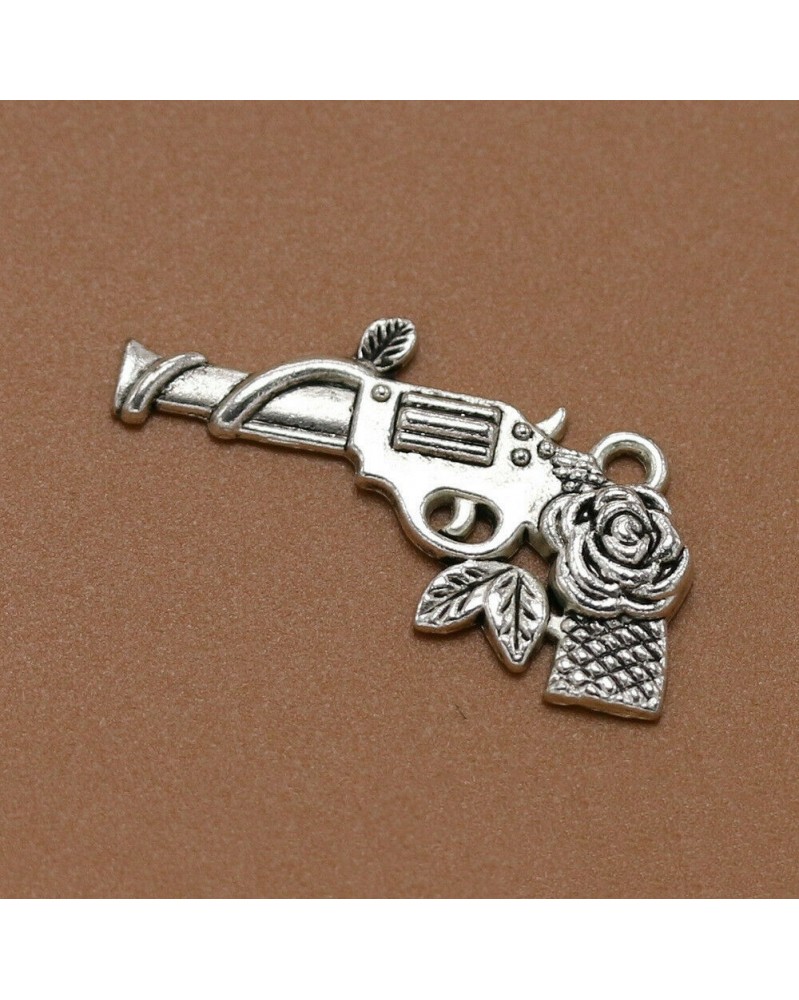 Nincs szín - 6cs antik ezüst virág fegyver varázsa tónusú medál gyöngy ékszer készítéshez